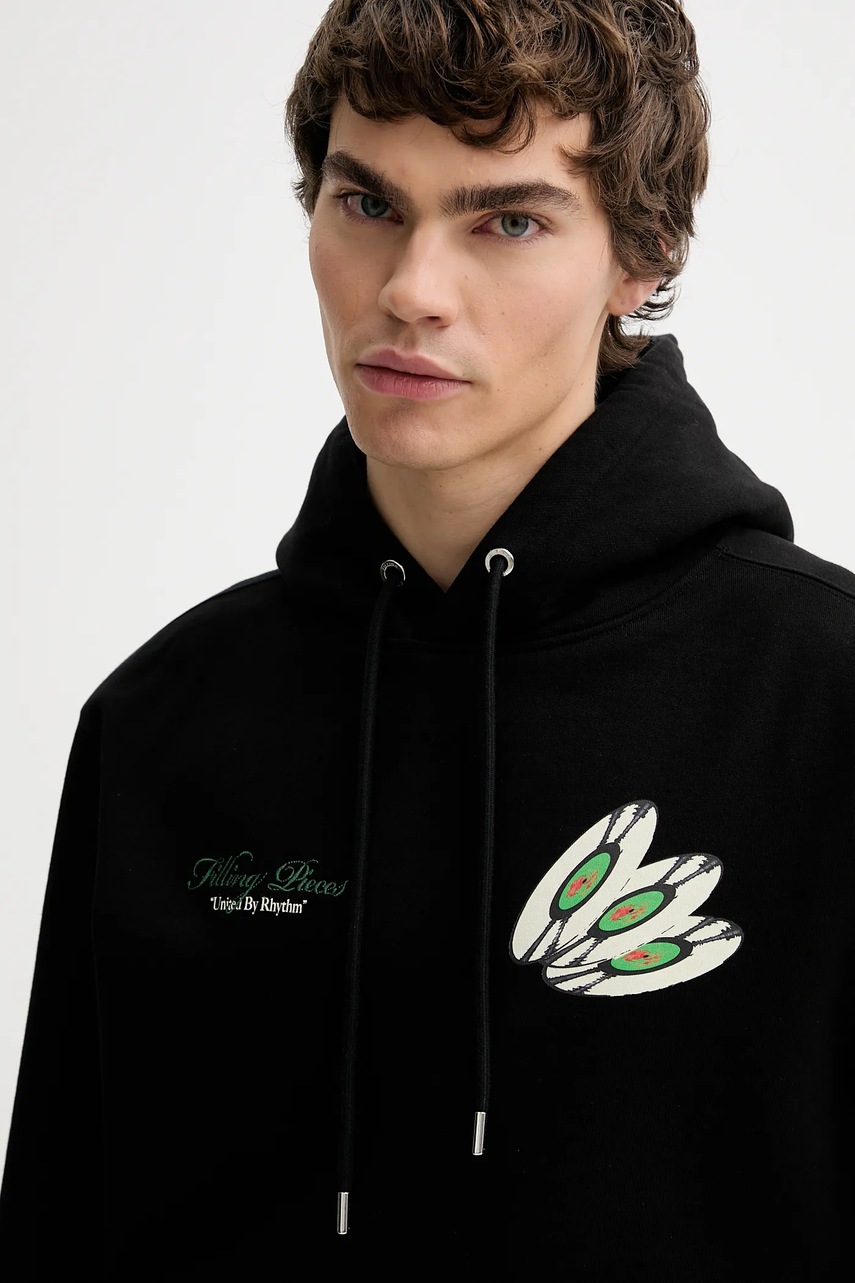 Filling Pieces bluza bawełniana Hoodie DJ męska kolor czarny z kapturem z nadrukiem 422532501241