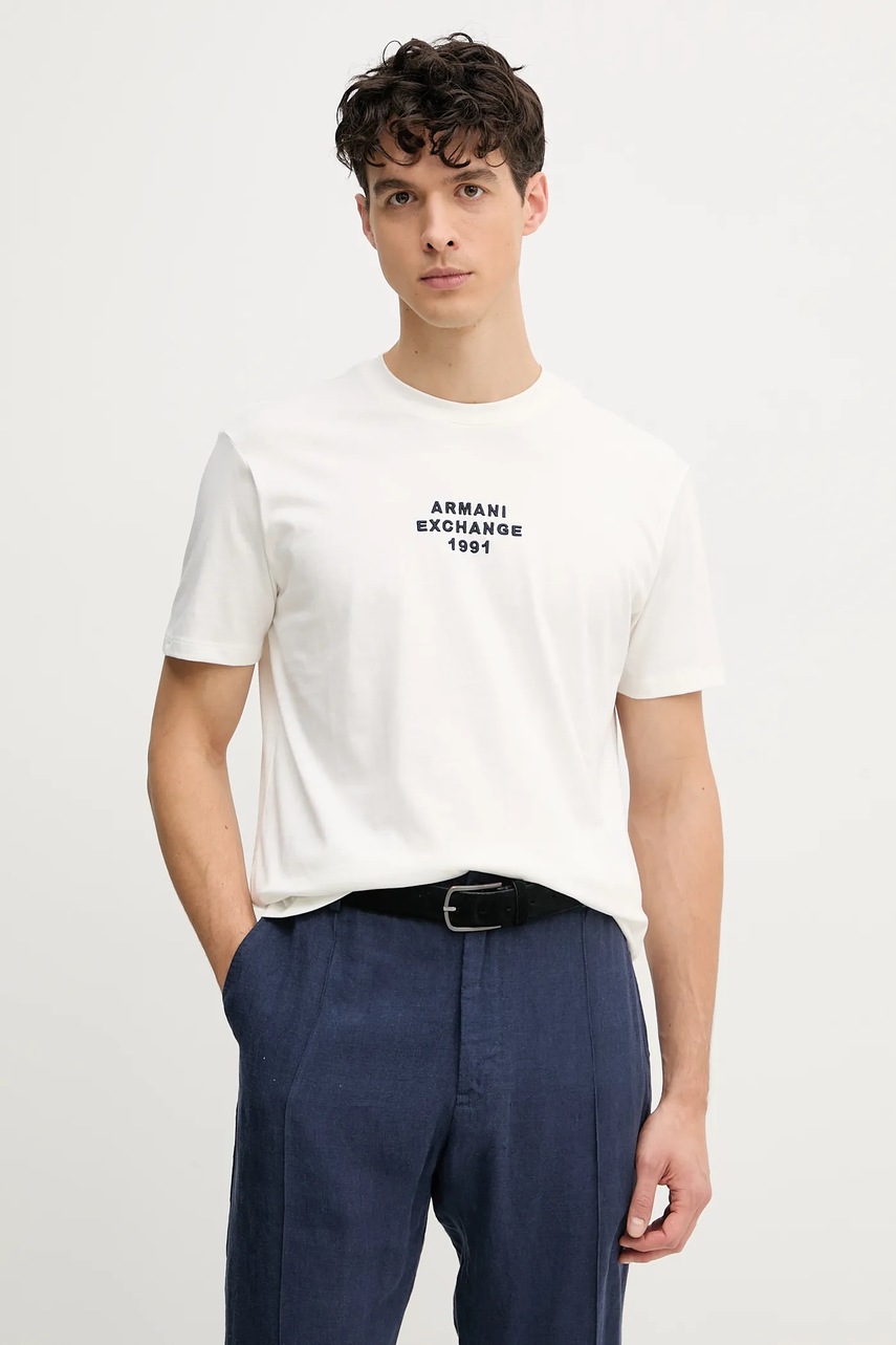 Armani Exchange t-shirt bawełniany męski kolor beżowy z aplikacją XM000540 AF10362