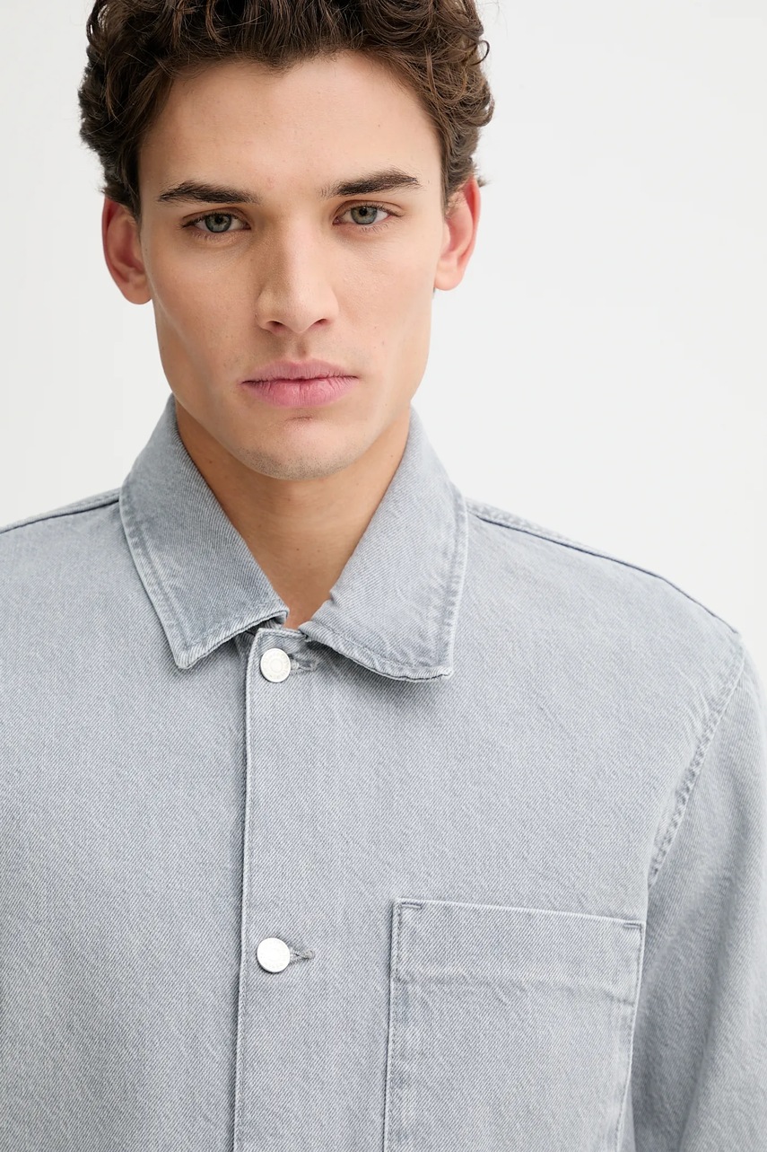 Marc O'Polo koszula jeansowa męska kolor szary regular z kołnierzykiem klasycznym 5000007430