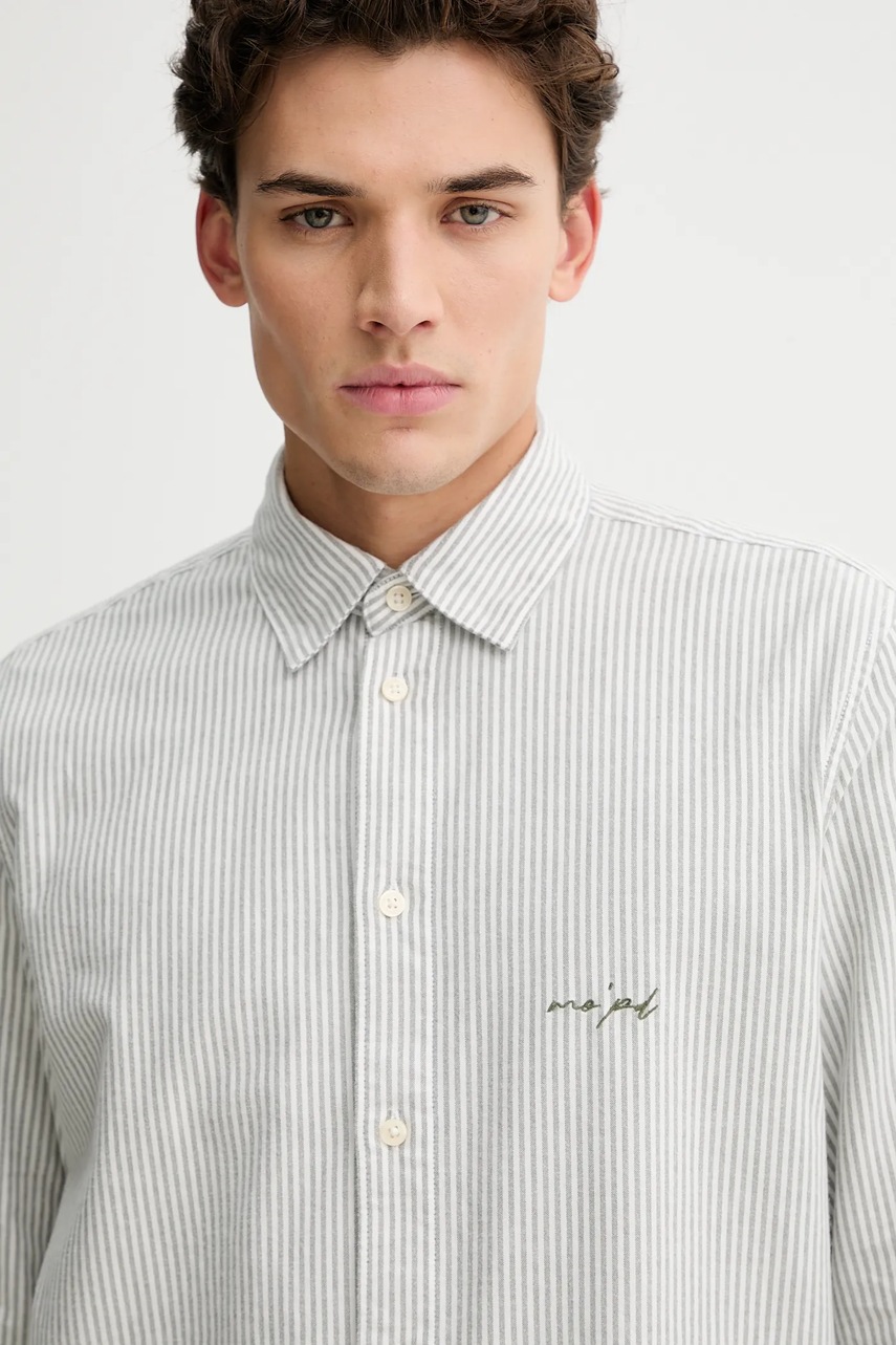 - Koszula w fasonie regular delikatnie dopasowuje się do sylwetki, ale nie podkreśla jej nadmiernie, zapewniając swobodę ruchów.