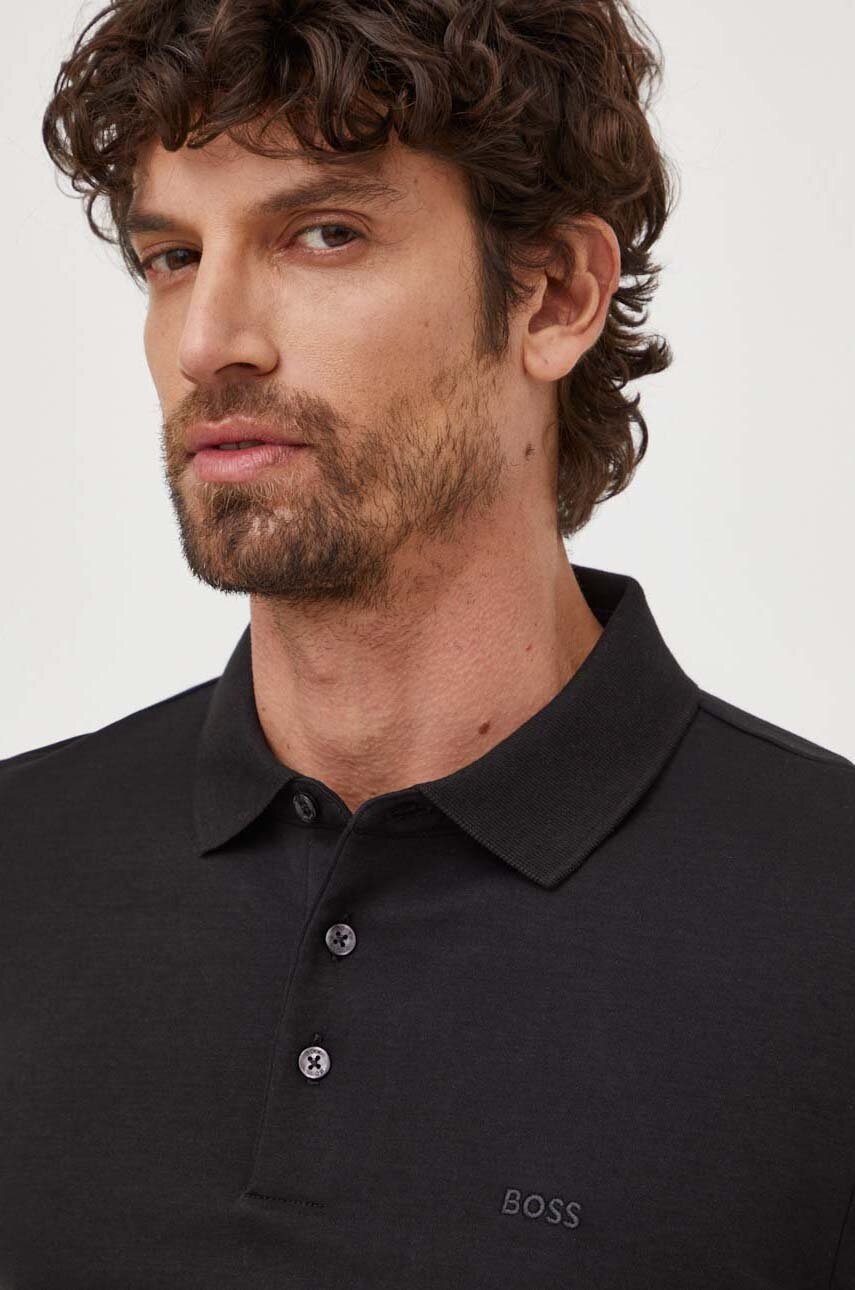 BOSS longsleeve bawełniany kolor czarny gładki 50468392