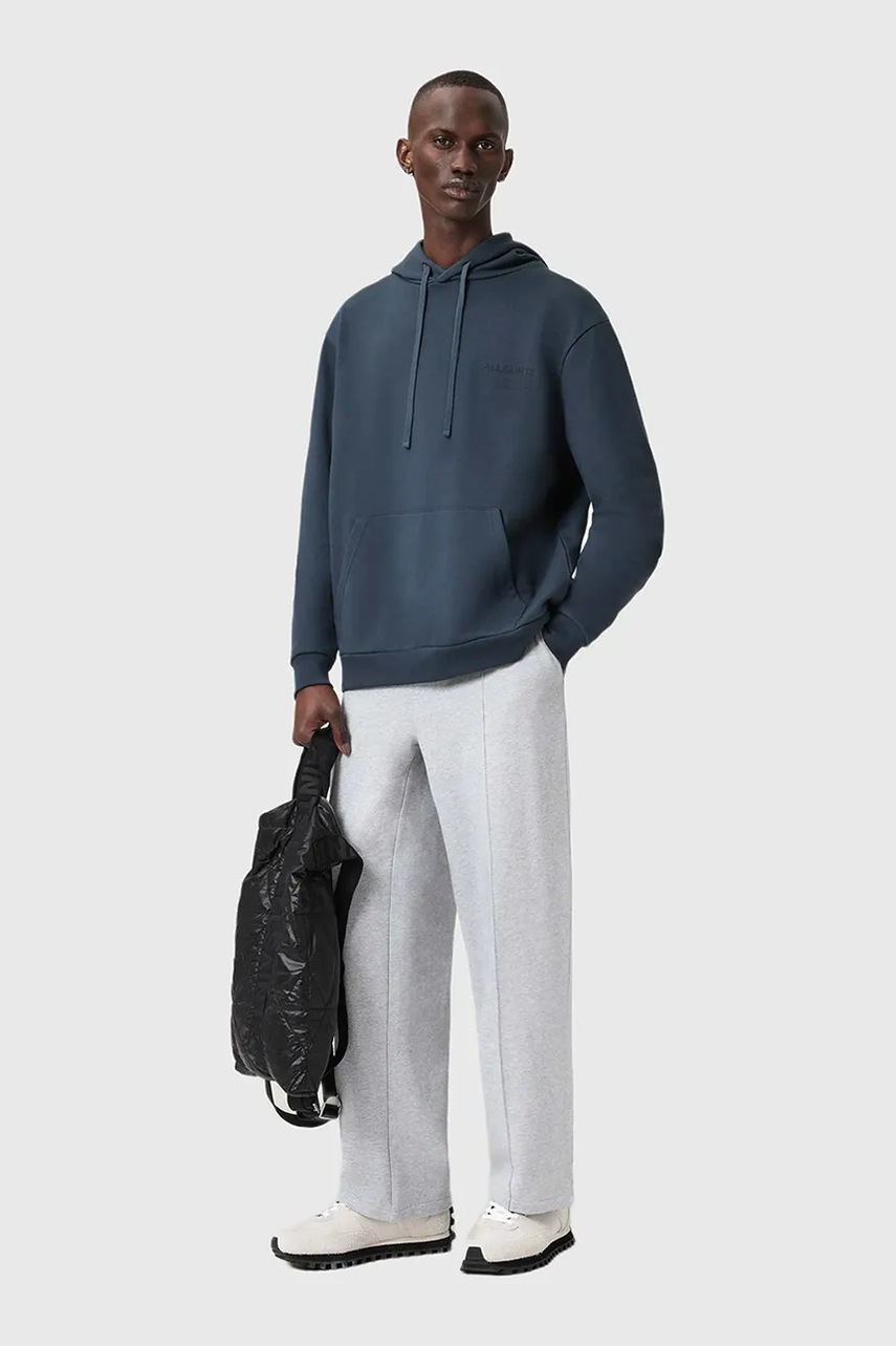 AllSaints bluza bawełniana UNDERGROUND męska kolor niebieski z kapturem z nadrukiem M034NB