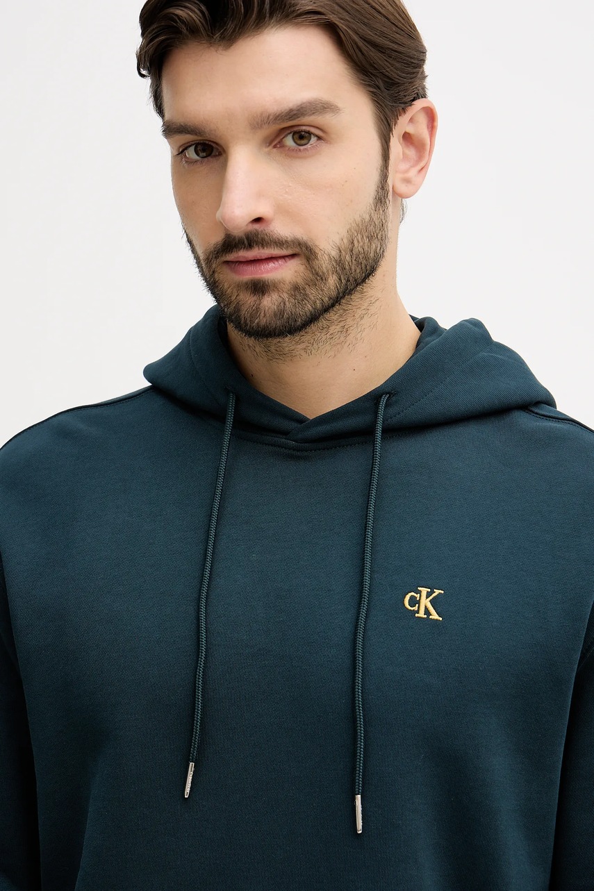 Calvin Klein Jeans bluza bawełniana męska kolor zielony z kapturem gładka LV04RC297G