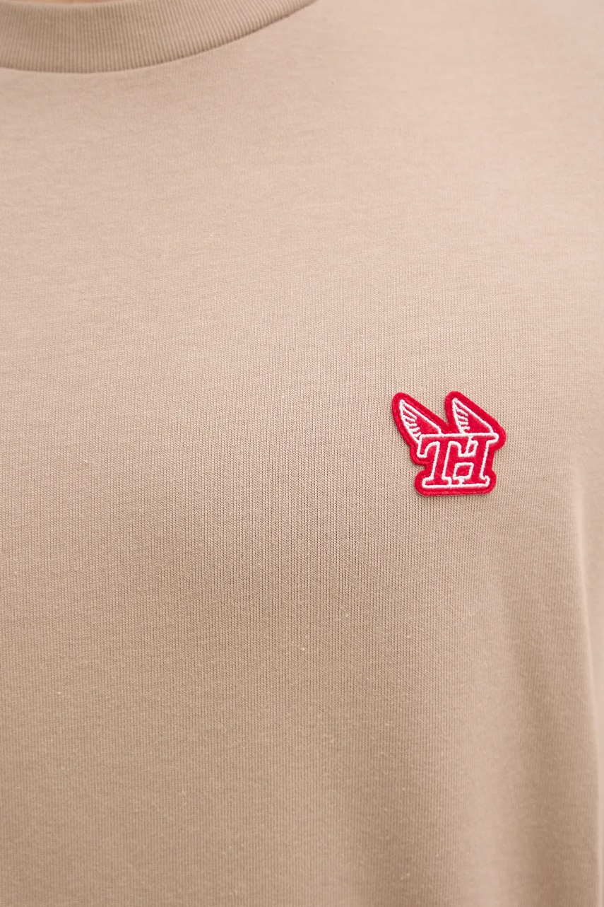 Tommy Hilfiger t-shirt bawełniany męski kolor beżowy z aplikacją MW0MW41468