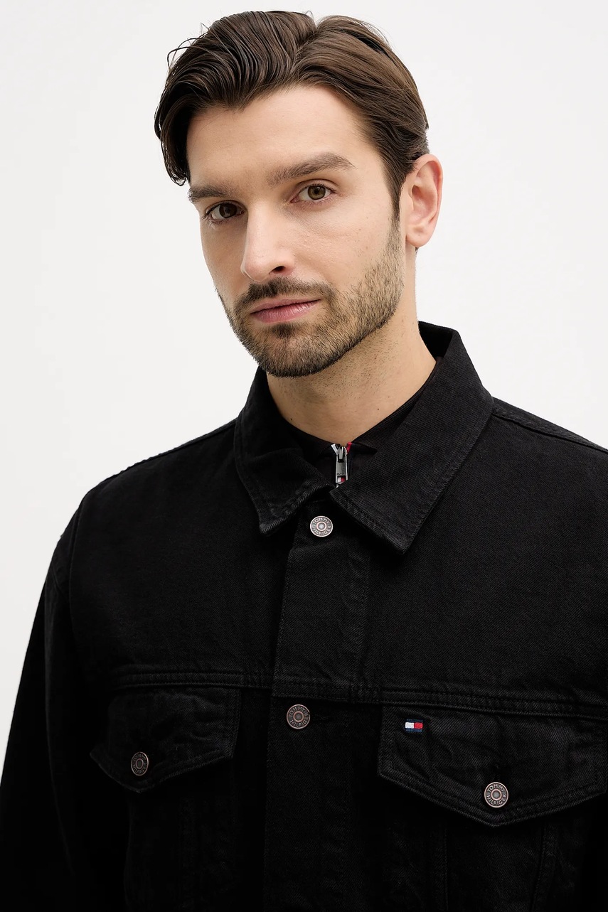 Tommy Hilfiger kurtka jeansowa kolor czarny przejściowa oversize MW0MW42616