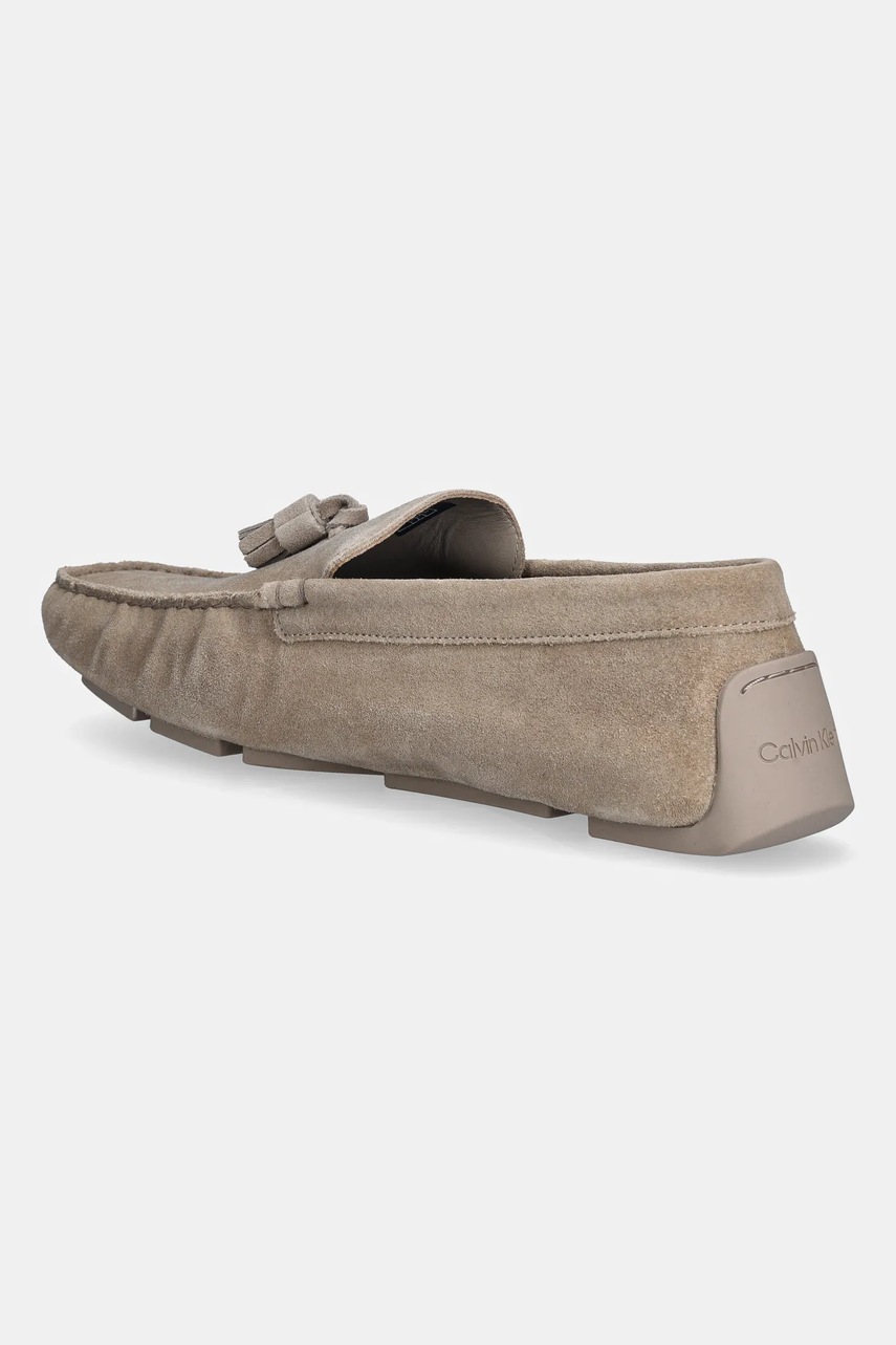 Calvin Klein mokasyny zamszowe DRIVER TASSELS SU męskie kolor beżowy HM0HM02028