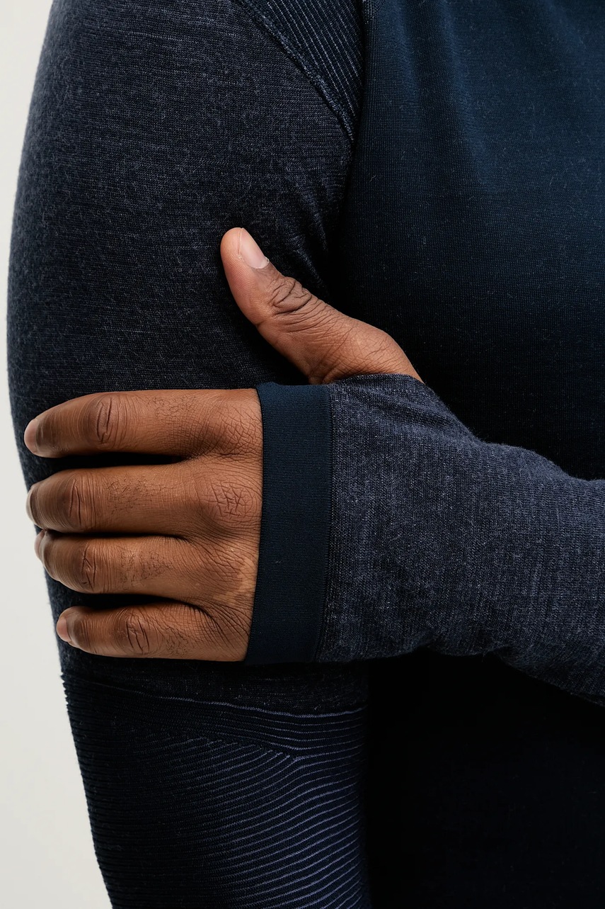 - Model wykonany z materiału z dodatkiem wełny merynosów, który zapewnia termoregulację i jest naturalnie antybakteryjny, co spowalnia powstawanie nieprzyjemnych zapachów. Dodatkowo wełna merynosów redukuje ryzyko powstania podrażnień skóry oraz posiada właściwości antyalergiczne.