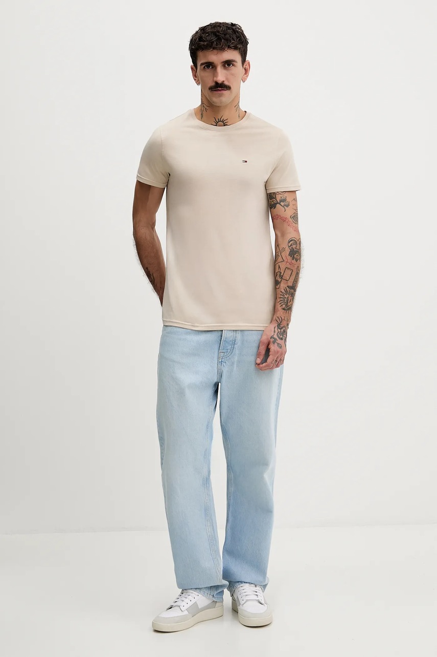 Tommy Jeans t-shirt bawełniany męski kolor beżowy gładki DM0DM04411