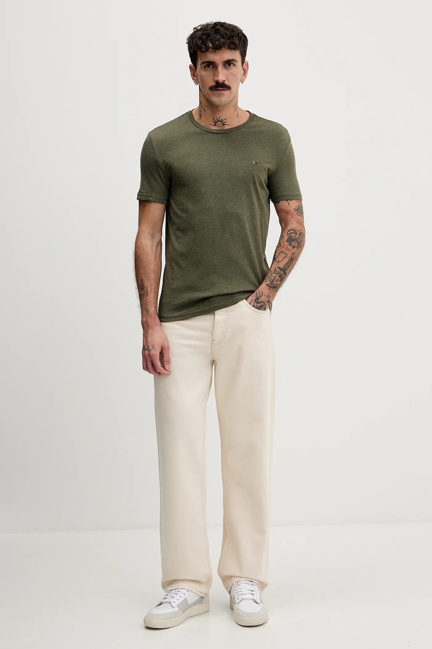 Tommy Jeans t-shirt męski kolor zielony gładki DM0DM20363