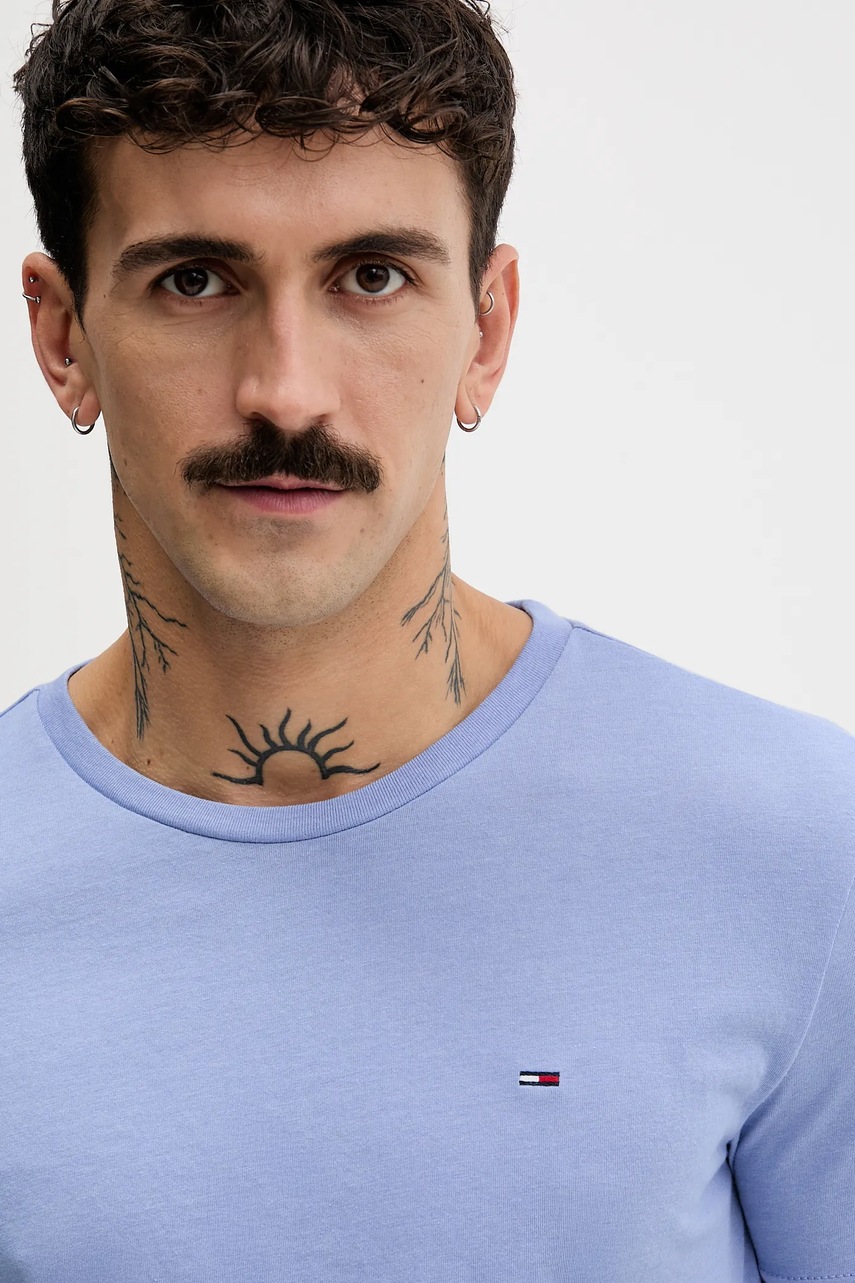 Tommy Jeans t-shirt męski kolor niebieski gładki DM0DM20363