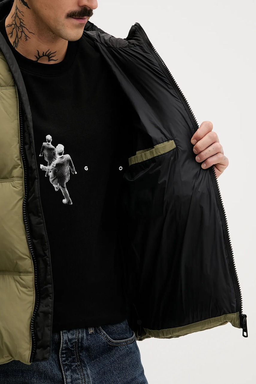 - Hydrofobowe wykończenie materiału wierzchniego nie pozwala dostać się wilgoci do wewnątrz, dzięki czemu dobrze chroni przed niekorzystnymi warunkami atmosferycznymi.