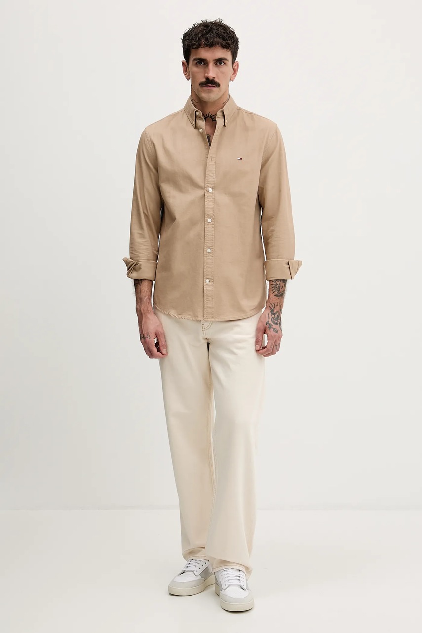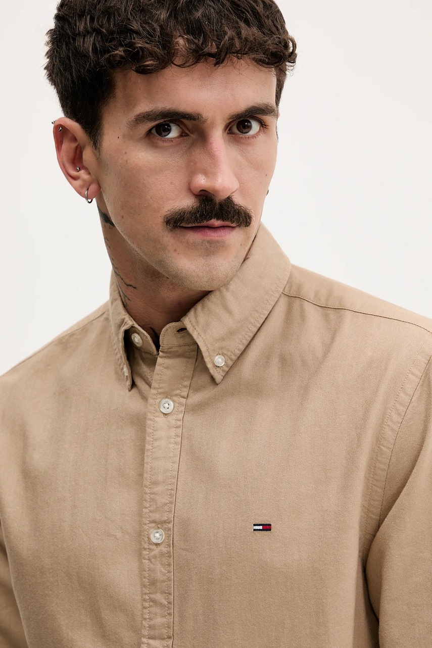 Tommy Jeans koszula bawełniana męska kolor brązowy regular z kołnierzykiem button-down DM0DM22836