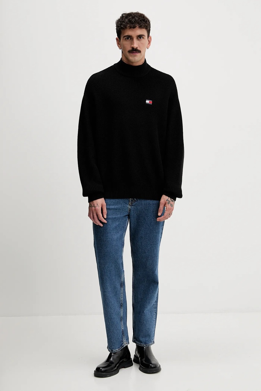 Tommy Jeans sweter bawełniany kolor czarny z półgolfem DM0DM22400