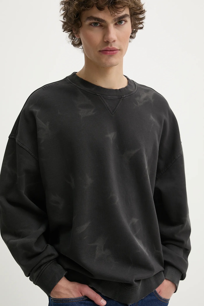 Hugo Blue bluza bawełniana męska kolor czarny gładka 50534266