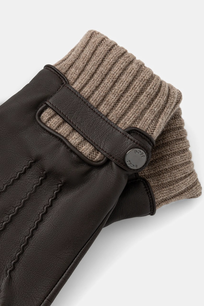 BOSS rękawiczki skórzane męskie kolor brązowy 50548796