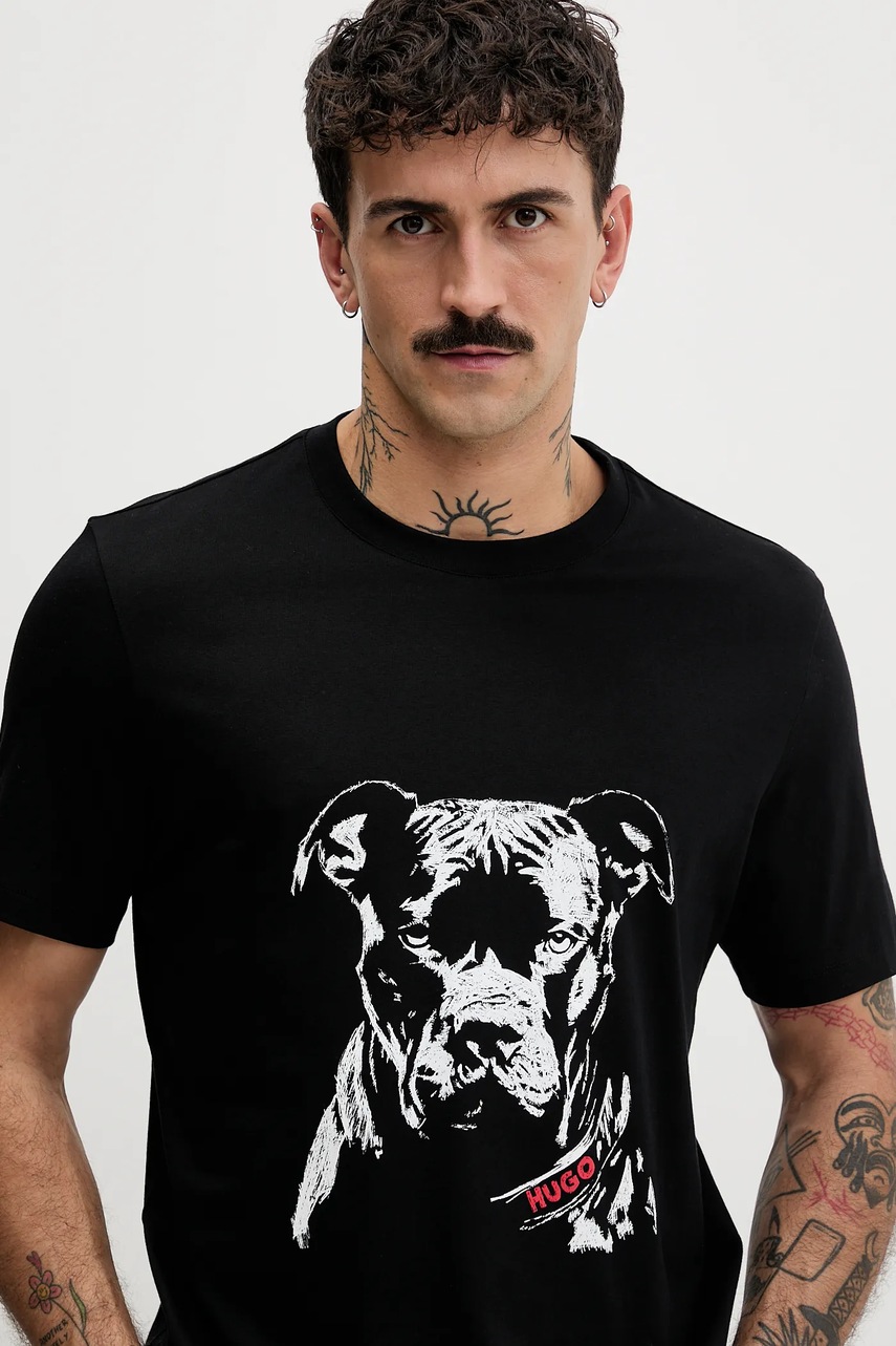HUGO t-shirt bawełniany męski kolor czarny wzorzysty 50553779