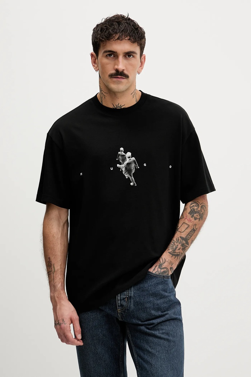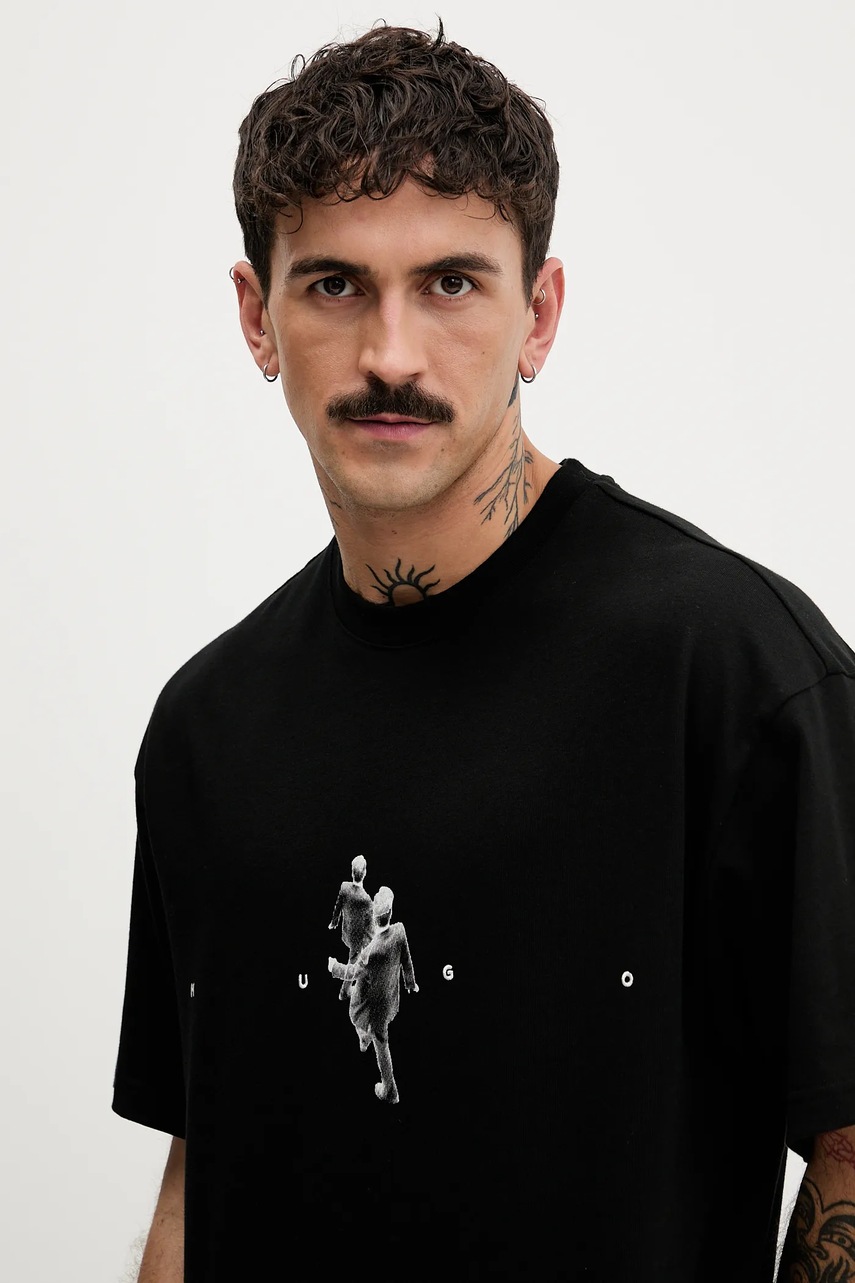 HUGO t-shirt bawełniany męski kolor czarny z nadrukiem 50553337