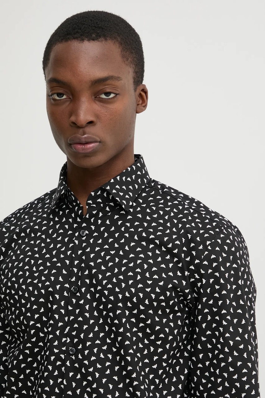 HUGO koszula bawełniana męska kolor czarny slim z kołnierzykiem klasycznym 50534068