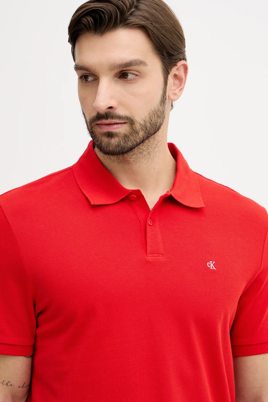 Calvin Klein Jeans polo bawełniane męski kolor czerwony gładki LV040EM269