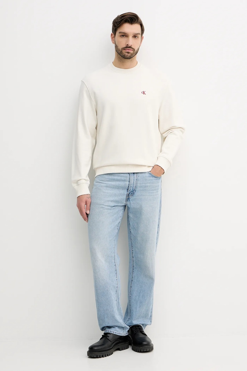 Calvin Klein Jeans bluza bawełniana męska kolor beżowy gładka LV04RC296G