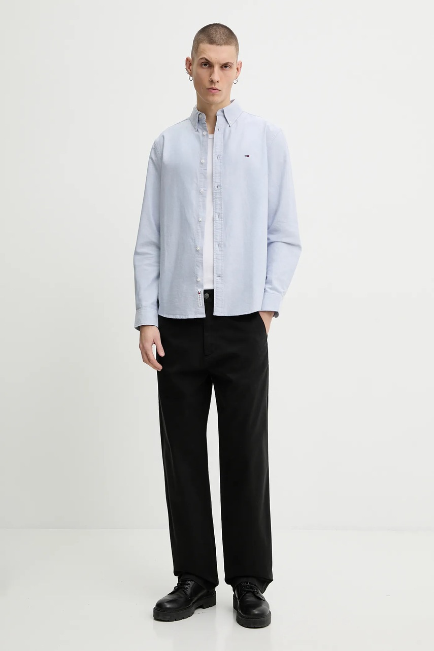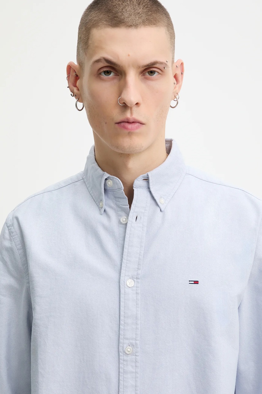 Tommy Jeans koszula bawełniana męska kolor niebieski regular z kołnierzykiem button-down DM0DM22836