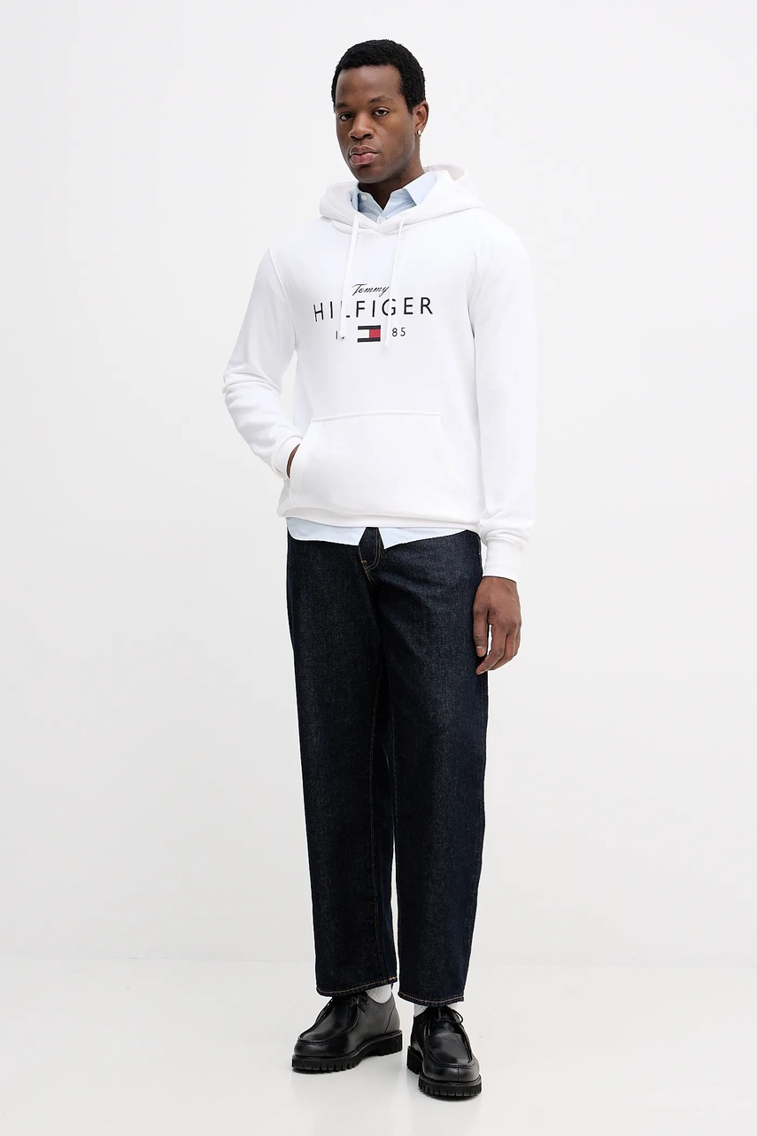 Tommy Hilfiger bluza męska kolor biały z kapturem z nadrukiem MW0MW41427