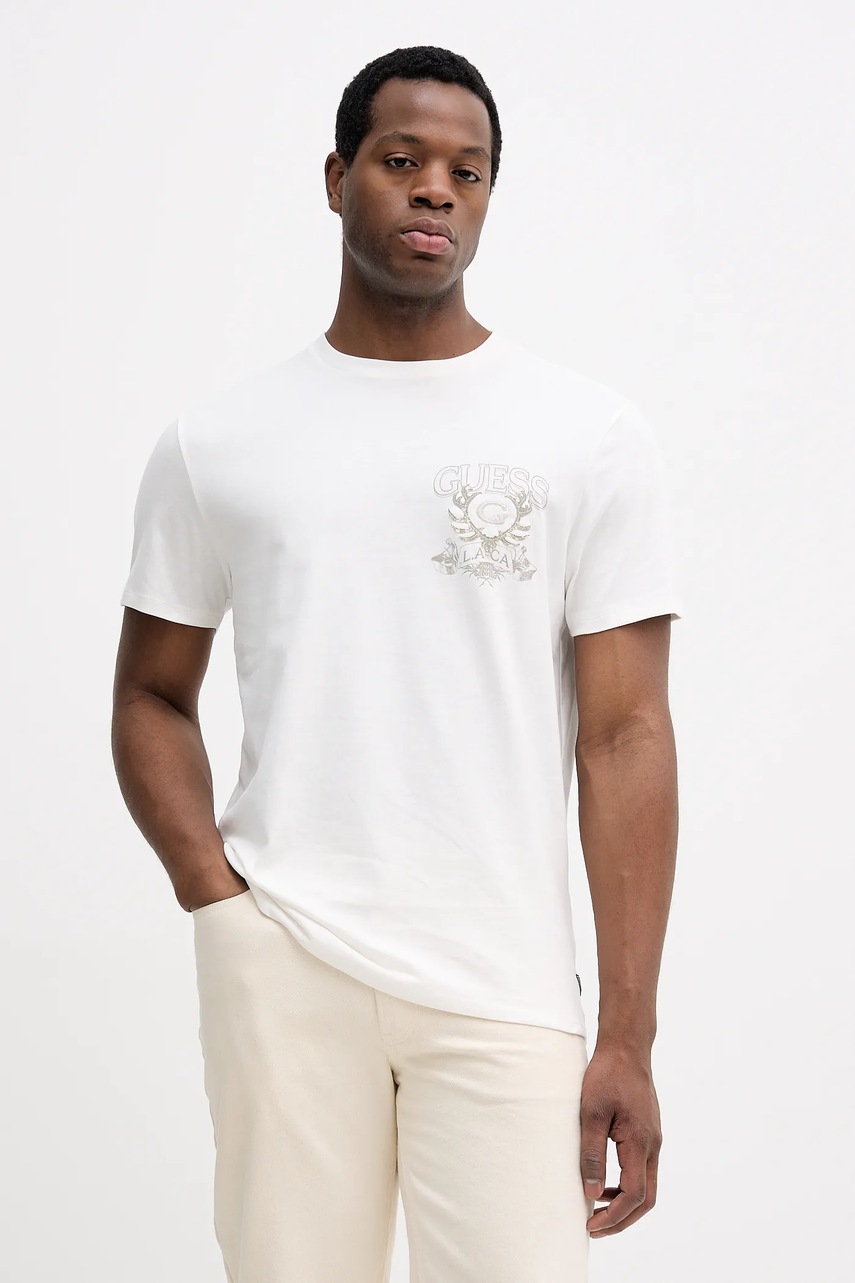 Guess t-shirt bawełniany męski kolor beżowy z nadrukiem M5BI61 KBZV1