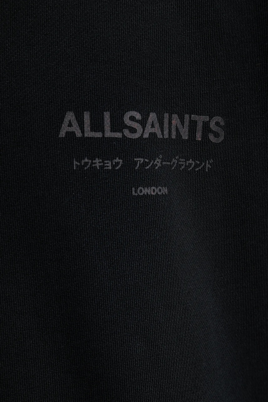 AllSaints bluza bawełniana UNDERGROUND męska kolor czarny z kapturem z nadrukiem M034NB
